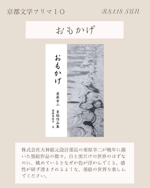 『おもかげ』 絵 栗原幸ニ 墨絵作品集 文 栗原有佳子 ・ B5フルカラー 64P 2000円 ・ イベント後にも購入希望してくださる方に向けて、販売案内をさせていただきます。 遠方の方など、よろしくお願いします